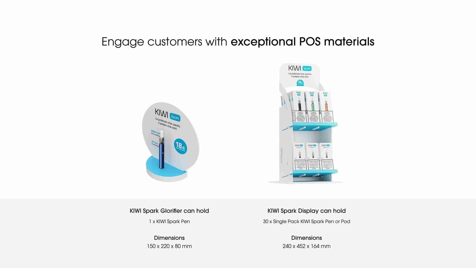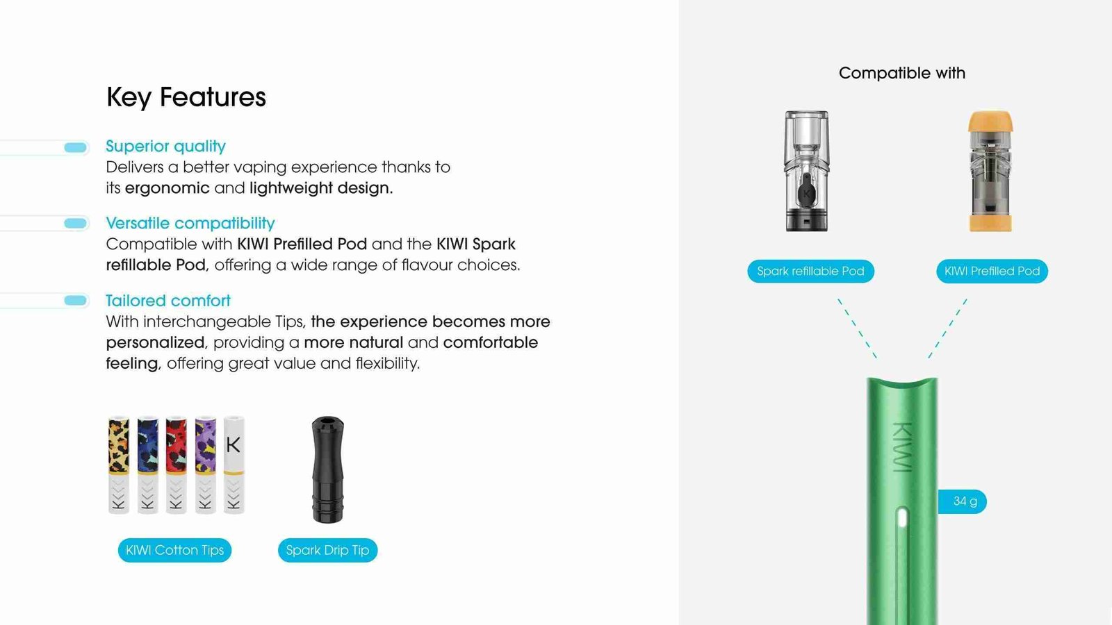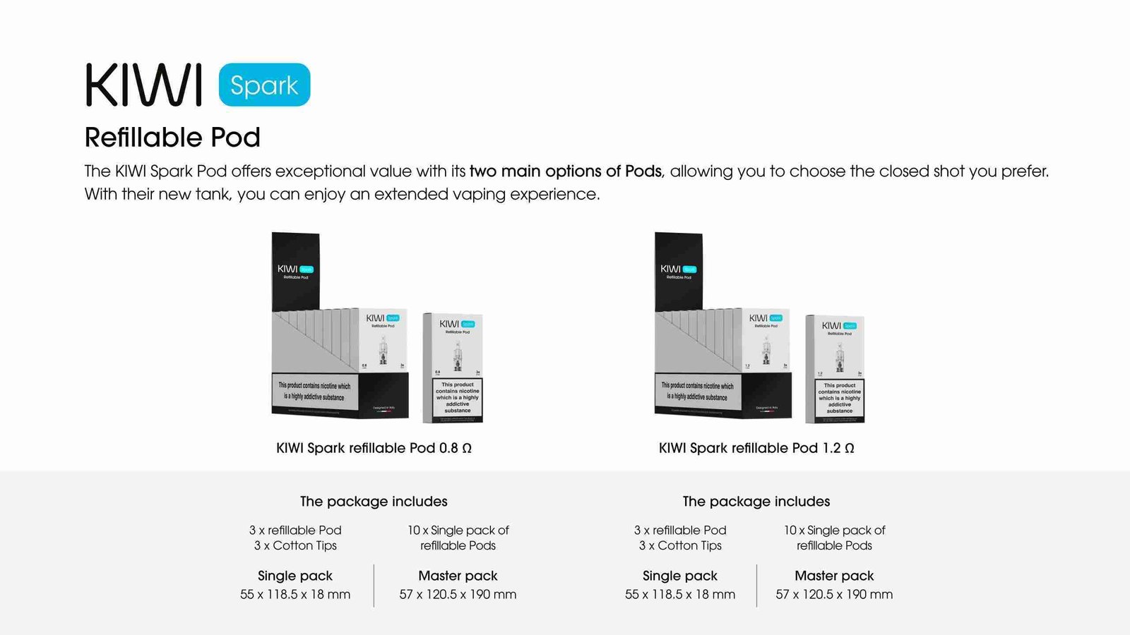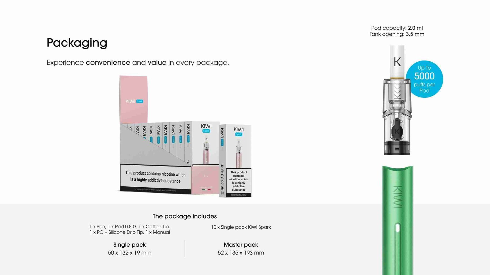 • Compatibilità con  POD da 0.8 – 1.2 e POD Precaricate KIWI